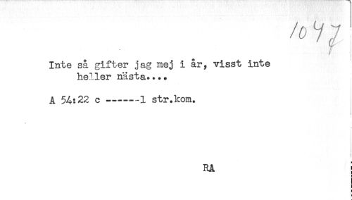 //// Inte så gifter jag mej i år, visst inte //// heller nästa*... //// A 54:22 c -------1 str.kom. //// t //// t //// RA ! //// a ////