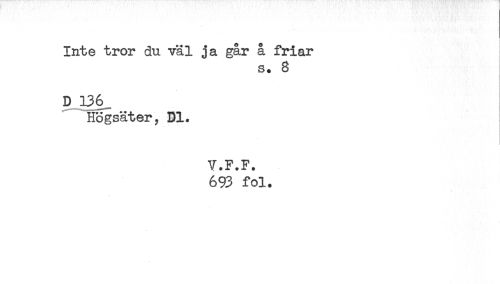 //// Inte tror du väl ja går å friar //// s. 8 //// D 136 //// Högsäter, Dl. //// V.F.F. //// 693 fol. ////