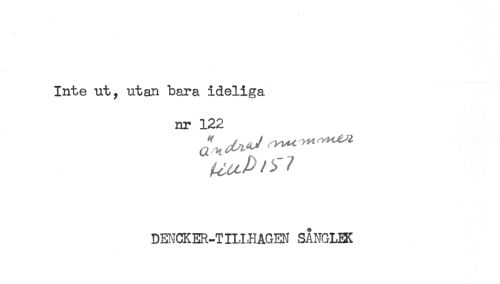 //// Inte ut, utan bara ideliga //// nr 122 //// DENCKER-TILLHAGEN SÅNGLEK ////