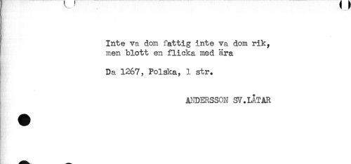 //// Inte va dom fattig inte va dom rik, //// men blott en flicka med ära //// Da 1267, Polska, 1 str. //// * //// ANDERSSON SV.LåTAR ////