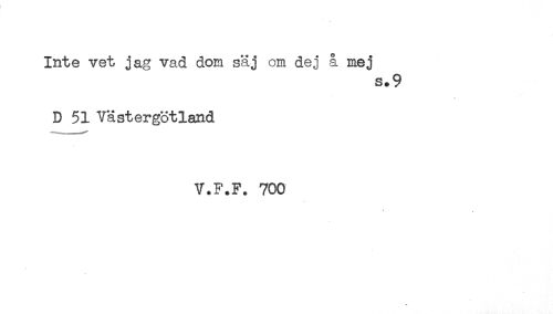//// Inte vet jag vad dom säj om dej å mej //// s.9 //// D 51 Västergötland //// V.F.F. 700 ////