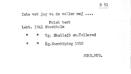 //// D 51 //// Inte vet jag va de voller mej .... //// i //// i //// i //// Polsk text I //// Lekt. 1%1 Stockholm ! //// * //// " " Vg. Skallsjö sn.Tollsred //// < //// ! //// ! //// " " Ög.Norrköping 1910 //// ) //// i //// NCRD.!'IUS. //// ! //// f //// c ////