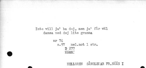 //// - //// Inte vill ja' ha dej, men ja' får väl //// dansa med dej lite granna //// nr 74 //// s.97 mel.not 1 str. //// D 277 //// ^^ Komm. //// HELLGREN SANGLH^AR FR.NÄÄ3 I ////