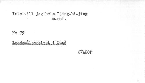 //// Inte vill jag heta Tjing-bi-jing //// m.not. //// No 75 //// i //// Landsmålsarkivet i Lund //// SVAKOP //// ) //// < //// ! //// i //// i //// ! //// i //// ^ ! //// i ////