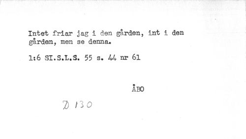 //// Intet friar jag i den gården, int i den //// gården, men se denna. //// 1:6 SI.S.L.S. 55 s. 44 nr 61 //// ÅBO //// 2) ////
