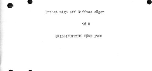 //// Inthet Hiigh aff Gifftas säger //// 98 U //// SK ILII NGT RYCK I^RE 1700 ////