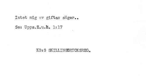 //// Intet mig av giftas säger.. //// Se: Upps.Z.u.R. 1:17 //// KB:S SKILLINGBRYCKSREG. ////