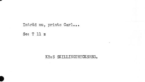 //// Inträd nu, prints Carl... //// Se: T 11 z //// KB:S SKILLINGTRYCKSREG. ////