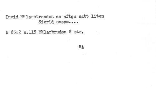 //// Invid Mälarstranden an af ten satt liten //// Sigrid ensam.... //// B 85:2 s.115 Mälarbruden 8 str. //// RA ////