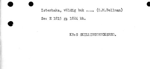 //// w w w //// Isterhaka, väldig buk .... (C.M.Bellman) //// Se: E 1815 g; 1824 kk. //// KB:S SKILIINGIRYCKSREG. //// . * //// i ////
