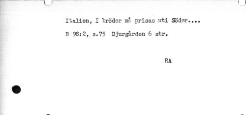 //// Italien, I broder må prisas uti Söder.... //// B 98:2, s.75 Djurgården 6 str. //// RA ////