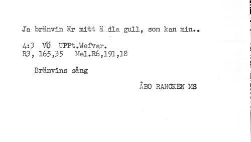 //// H //// ) //// Ja bränvin är mitt ä dia gull, som kan min.. ! //// L //// A: 3 VC UPPt.Wefvar. [ //// R3, 165,35 Mel.R6,191,l8 ! //// E //// ! //// Bränvins sang [ //// ! //// ÅBO RANCKEN MS ! //// ! //// i ////