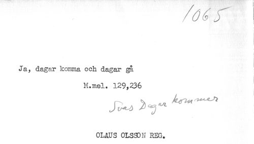 //// ! //// < //// L //// Ja, dagar komma och dagar gå //// M.mel. 129,236 //// OLAUS OLSSON REG. ////
