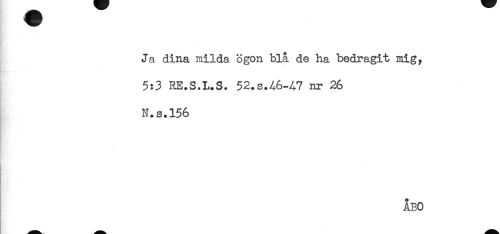//// Ja dina milda ögon blå de ha bedragit mig, //// 5:3 RE.S.L.S. 52.S.A6-47 nr 26 //// N.s.156 //// ÅBO ////