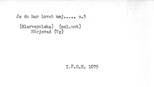 //// Ja du har lovat mej..... s.5 //// (Slarvepolska) (mel.not) //// Här j ev ad (?g) //// I.F.G.H. 1075 ////