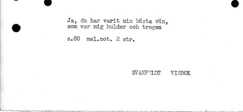 //// Ja, du har varit min bästa vän, //// ^ som var mig hulder och trogen //// s.80 mel.not. 2 str. //// SVANFELDT VISBOK ////