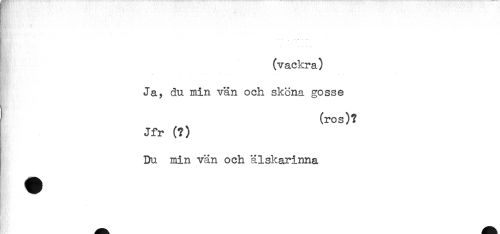 //// (vackra) //// Ja, du min vän och skona gosse //// ' (ros)? //// Jfr (?) //// Du min vän och älskarinna ////