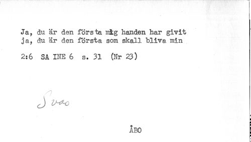 //// Ja., du är den första mig handen har givit //// ja, du är den första som skall bliva min //// 2:6 SÅ INE 6 s. 31 (Nr 23) //// J ^ ////
