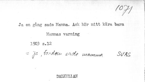 //// Ja en gång sade Manrna. Ack hör mitt kära barn //// i //// i //// Mammas varning //// 1903 s.12 //// i //// ! //// h //// t. //// # r //// i- //// DALKUH.AI^ ; ////