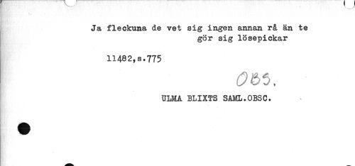 //// Ja fleckuna de vet sig ingen annan rå än te //// gör sig lösepickar //// 11482,s.775 //// ULMA BLIXTS SAML.OBSC. ////