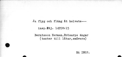 //// Ja flyg och fläng åt helvete--- //// insp.Btj. 14958:15 //// Berntsson Herman,Brösarps ängar //// (texter till låtar,småvers) //// RA INSP. ////