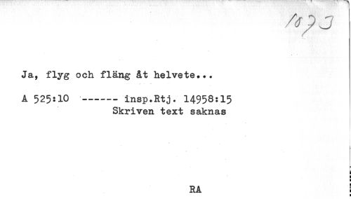 //// Ja, flyg och fläng åt helvete... //// A 525:10 ------ insp.Rtj. 14958:15 //// Skriven text saknas //// t //// < //// * //// I //// i //// t //// RA ! //// H ////