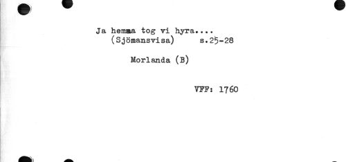 //// Ja hemma tog vi hyra.... //// (Sjömansvisa) s.25-28 //// Morlanda (B) //// VFF: 1760 //// ! ^ ////