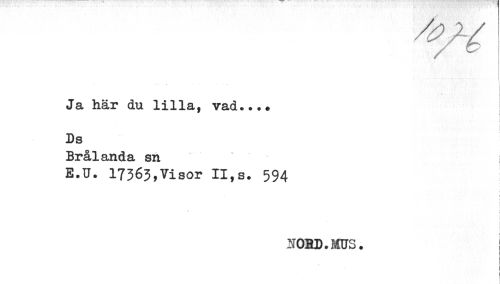 //// Ja här du lilla, vad.... //// i //// Ds //// Brålanda sn //// E.U. 17363,Visor II,s. 594 //// : //// ' r //// i //// NORD.MUS. ////