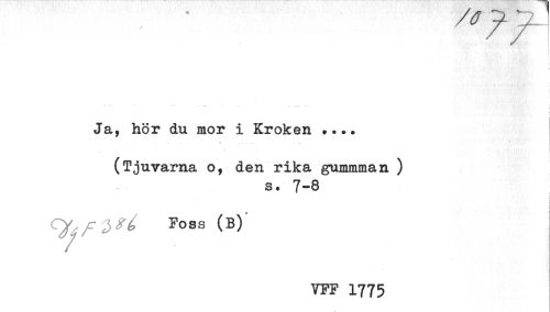 //// < //// Ja, hör du mor i Kroken .... //// : //// - //// (Tjuvarna o, den rika gummman ) //// s. 7-8 //// (y /r^y^ Foss (B)' //// VFF 1775 ////