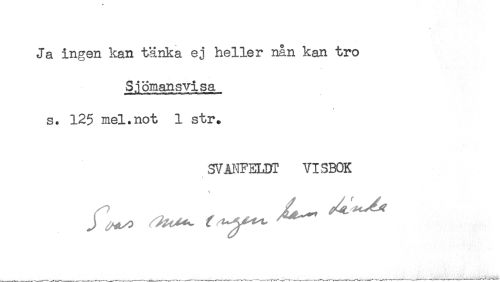 //// Ja ingen kan tänka ej heller nån kan tro //// Sjömans vi sa //// s. 125 mel.not 1 str. //// SVANFELDI VISBOK //// i ////
