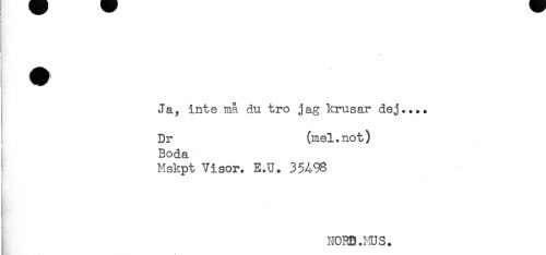 //// Ja, inte må du tro jag krusar dej.... //// Dr (mel.not) //// Boda //// Mskpt Visor. E.U. 35A98 ////