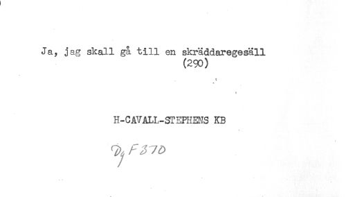 //// Ja, jag skall gå till en skräddaregesäll //// (290) //// t //// t //// ! //// H-CAVALL-STEPHENS KB //// * ////