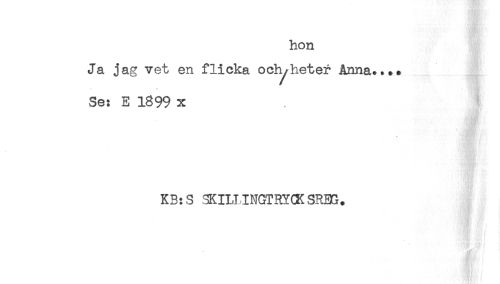 //// hon //// Ja jag vet en flicka ocly heter Anna...* //// Se: E 1899 x //// KB:S 3(IH,INGTRYCKSREG. ////