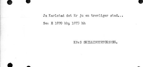 //// Ja Karlstad det är ju en trevliger stad... //// Se: E 1870 kk; 1873 hh //// KB:S SKILLINGTRYCKSREG. ////