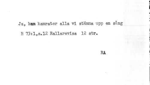 //// e //// H //// Ja, kom kamrater alla vi stämma upp en sang //// j //// B 73:l,s.l2 Rallarevisa 12 str. //// s //// ä //// 5 //// F //// B //// RA ^ //// r ////