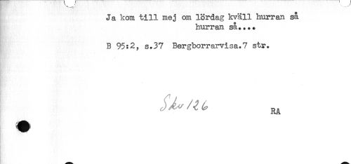 //// Ja kom till mej om lördag kväll hurran så //// hurran så.... //// B 95:2, s.37 Bergborrarvisa.7 str. //// * //// * //// . //// KA //// . //// - ////