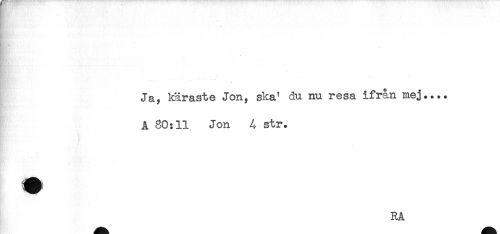 //// Ja, käraste Jon, ska^ du nu resa ifrån mej.... //// A 80:11 Jon A str. //// RÅ ////