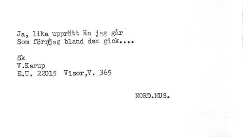 //// Ja? lika upprätt än jag gar //// Som förqfjag bland dem gick.... ! //// Sk //// V.Karup //// E.U. 22015 Visor,V. 365 //// NORD.MUS. ////