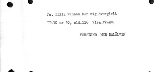 //// Ja? lilla vännen har mig övergivit //// 11:10 nr 50? sid.116 Visa?fragm. //// f * //// F0R3KJND MED DALÄLVEN ////