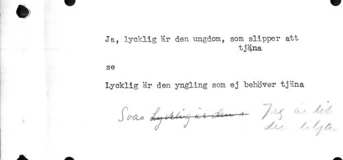 //// Ja, lycklig är den ungdom? som slipper att //// tj^na //// . //// se //// Lycklig är den yngling som ej behöver tjäna ////