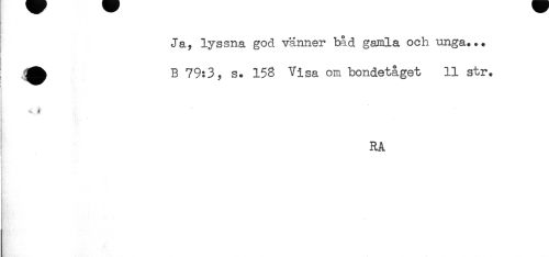 //// Ja, lyssna god vänner bad gamla och unga... //// B 79:3, s. 158 Visa om bondetåget 11 str. //// RA //// ! ' //// 1 ////