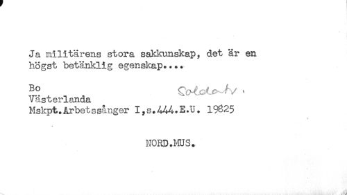 //// Ja militärens stora sakkunskap, det är en //// högst betänklig egenskap.... //// Bo ^ Q^t^V i //// Vasterlanda //// Mskpt.årbetssånger 19825 //// * //// NORD.HUS. ////
