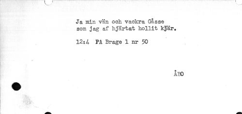 //// Ja min vän och vackra Gåsse //// som jag af hjärtat hollit kjär. //// 12:4 PÅ Brage 1 nr 50 //// .v //// ÅBO //// .-/g;,... //// ! ////