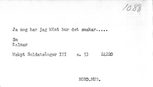 //// ! //// . //// Ja nog har jag känt hur det smakar..... //// Sm //// Kalmar //// Mskpt Soldatsånger III s. 53 24220 //// NORD.HUS. ////