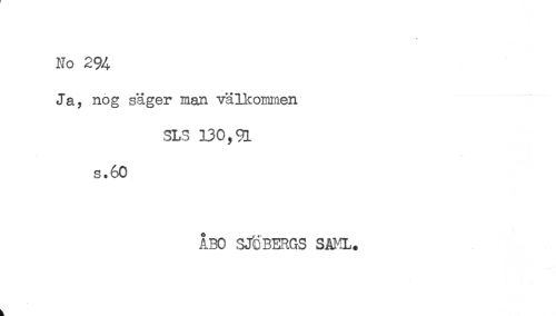 //// No 2% //// Ja, nog säger man välkommen //// SLS 130,91 //// s.60 //// ÅBO SJÖBERGS SAHL. //// k ////