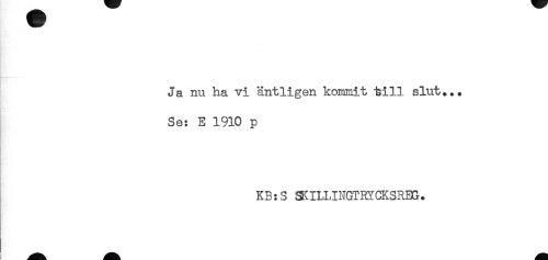 //// Ja nu ha vi äntligen kommit till slut... //// Se: E 1910 p //// KB:S SdLLINGTKYCKSREG. //// _ ^^^ _ ////