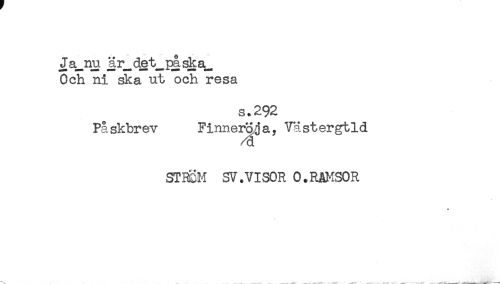 //// Ja_nu är^^t^^Å^a^ //// Och ni ska ut och resa //// s*292 //// Påskbrev Finneröja, Västergtld //// STRCM SV.VISOR O.RåKSOR ////