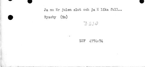 //// * //// Ja nu är julen slut och ja ä lika full.. //// ^ Ryssby (Sn) //// t :: v j ^ //// ! //// ** //// LUF 4774:74 //// * //// ______^______ ____ ////