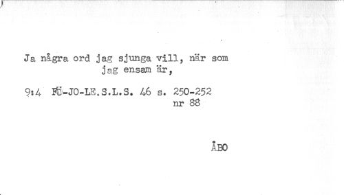 //// Ja några ord jag sjunga vill, när som //// jag ensam är, //// 9:4 B§-J0-LE.S.L.S. 46 s. 250-252 //// nr 88 //// ÅBO ////