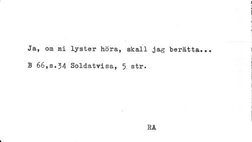 //// t //// * //// Ja, om ni lyster höra, skall jag berätta... ! //// * //// B 66,s.34 Soldatvisa, 5, str. ! //// i ////